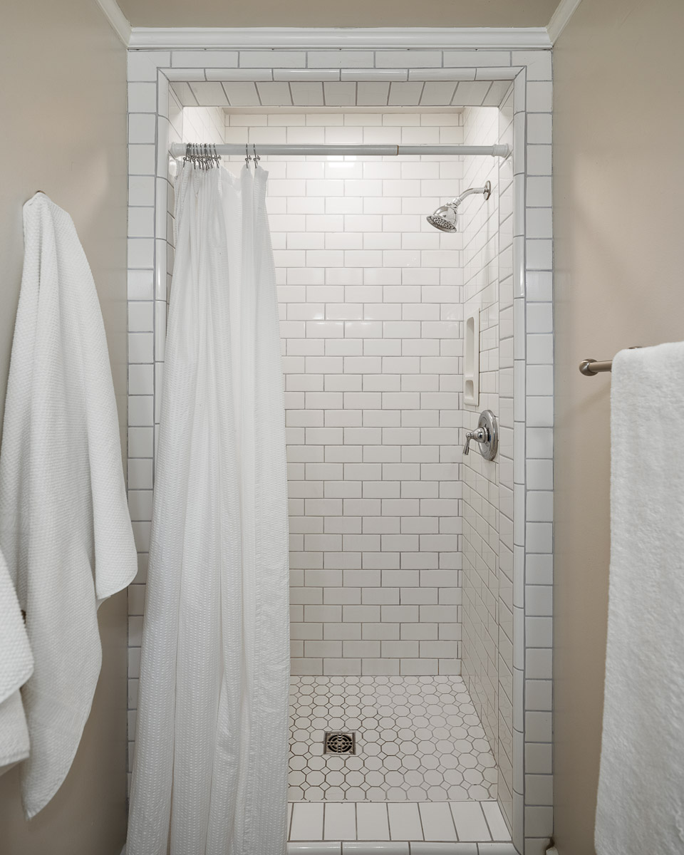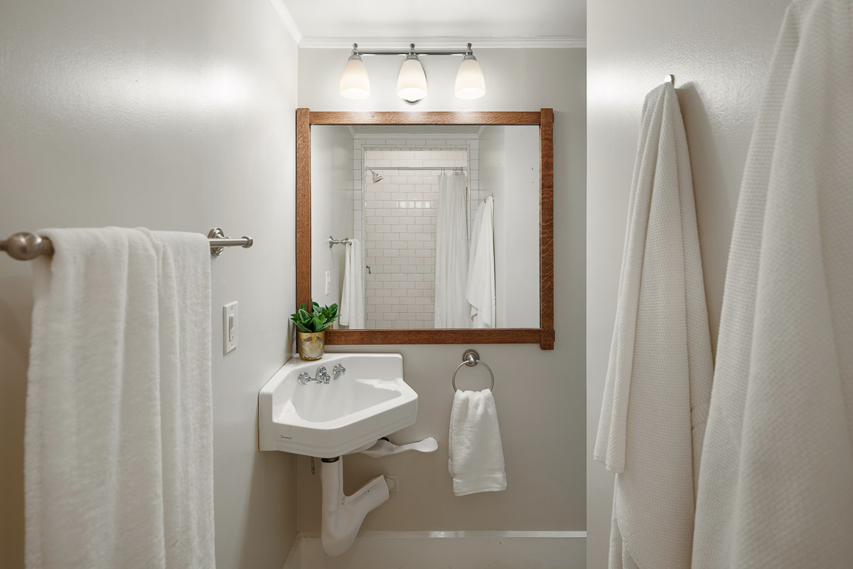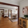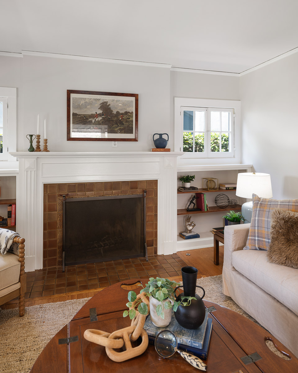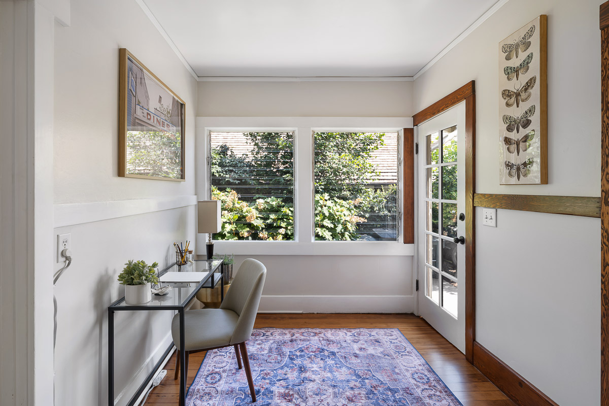 As you step up to the wide, inviting porch, you are beckoned in via a stately front door that leads into the living room with an impressive tiled fireplace framed by beautiful built-ins. From there you enter the central, formal dining room that has dark wood molding and tall French doors which let the light flood in. This adjoins the sun-lit, impeccably renovated kitchen, with stainless steel appliances, gleaming white cabinetry, an oversized Shaw farmhouse sink and stunning quartzite counters. There are three spacious bedrooms with two bathrooms that have been tastefully updated while remaining in keeping with the architecture of this highly desirable style. Additionally, there is a back mudroom, laundry area or multi-purpose space that steps out to the deep backyard.