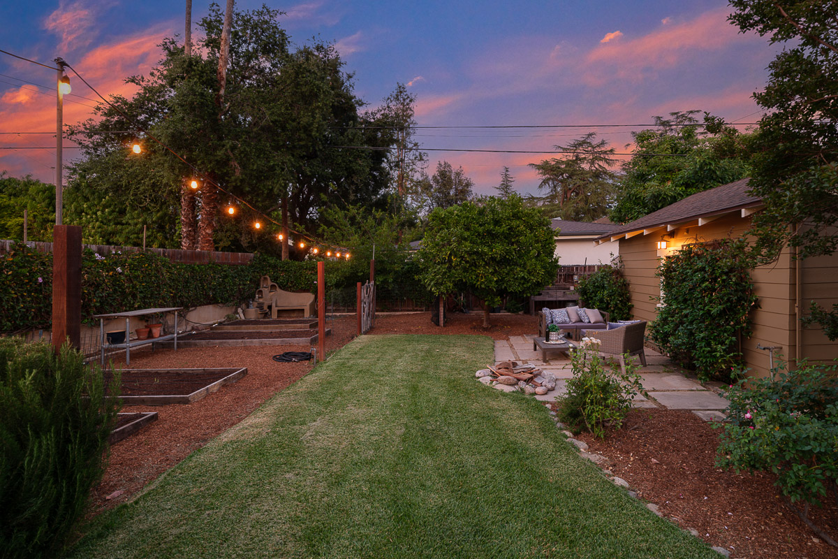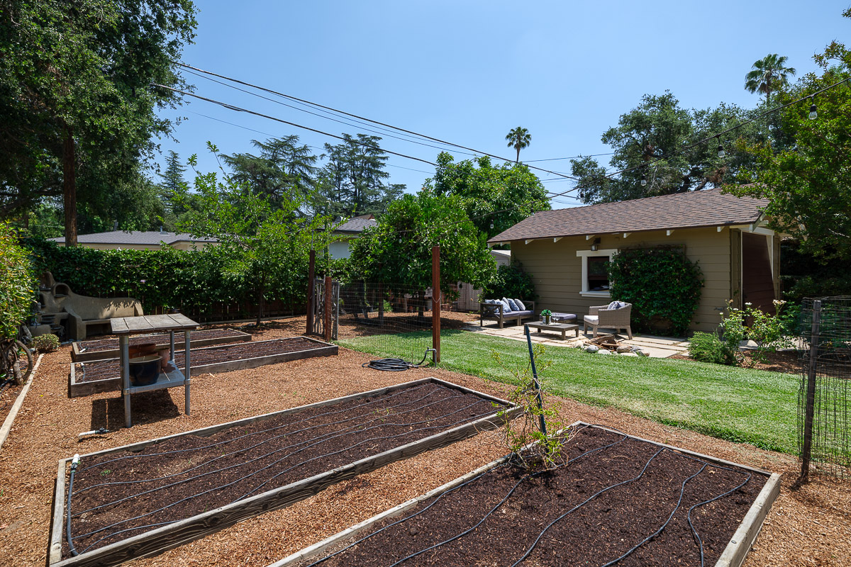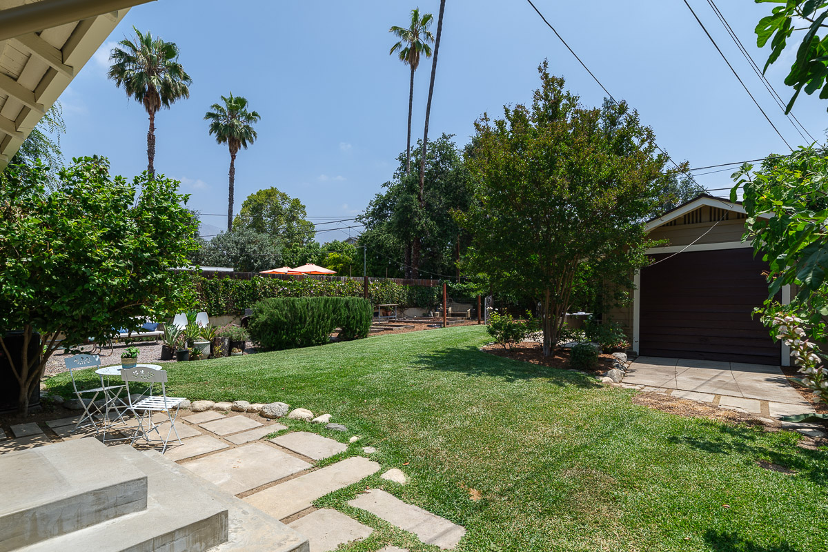 The expansive rear yard offers spaces for celebrating with friends or for quiet dinners under the stars. The 9,698 square foot lot, with a verdant lawn, a raised vegetable garden, numerous seating areas and an abundance of fruit trees is a pleasure to behold. The residence offers picture-perfect curb appeal and is located in the celebrated Bungalow Heaven Historic district which has been cited as one of the best neighborhoods in America. There are tours of the magnificent homes that line the shade dappled avenues. Don’t miss this true Pasadena architectural treasure in this sought-after community!