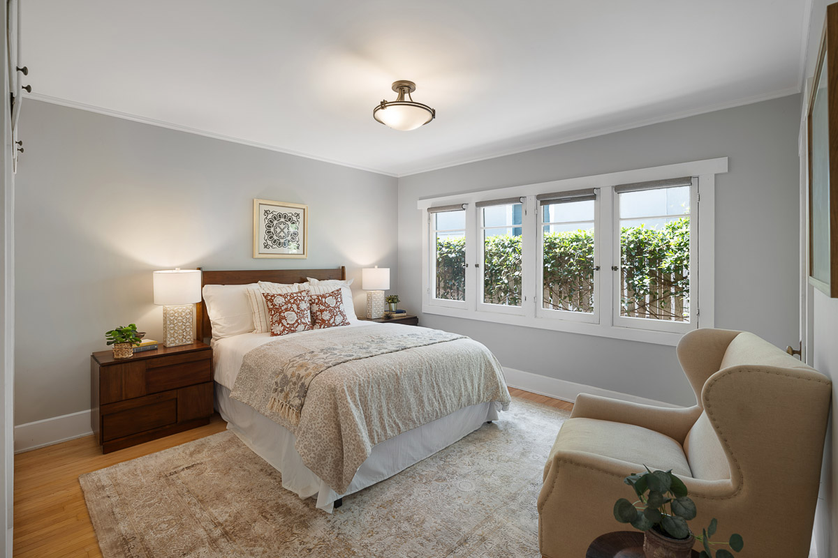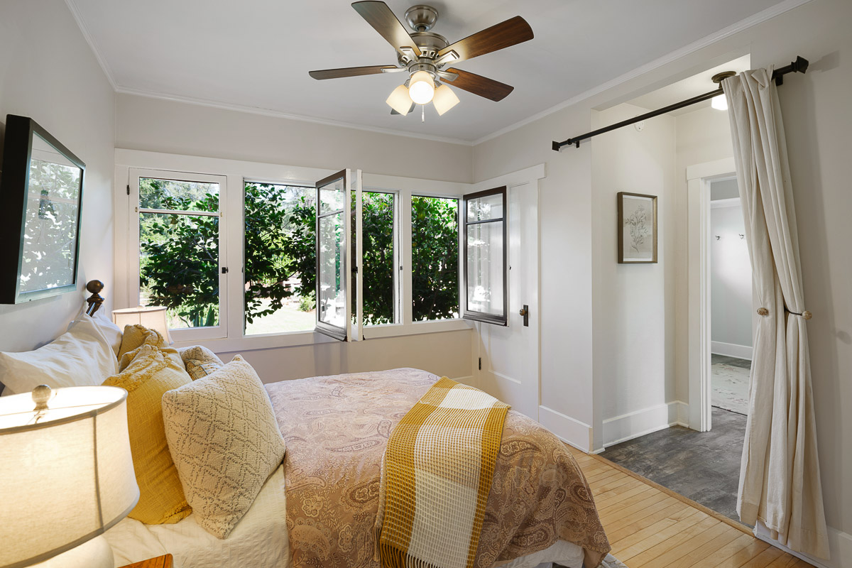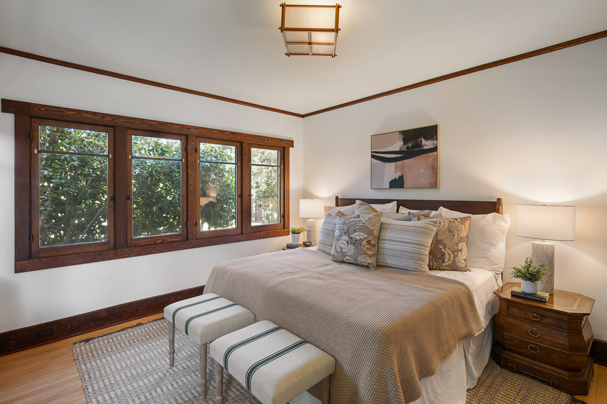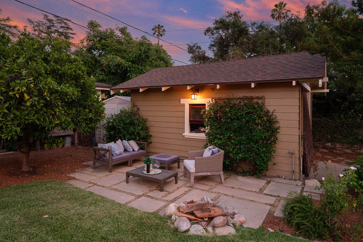The expansive rear yard offers spaces for celebrating with friends or for quiet dinners under the stars. The 9,698 square foot lot, with a verdant lawn, a raised vegetable garden, numerous seating areas and an abundance of fruit trees is a pleasure to behold. The residence offers picture-perfect curb appeal and is located in the celebrated Bungalow Heaven Historic district which has been cited as one of the best neighborhoods in America. There are tours of the magnificent homes that line the shade dappled avenues. Don’t miss this true Pasadena architectural treasure in this sought-after community!
