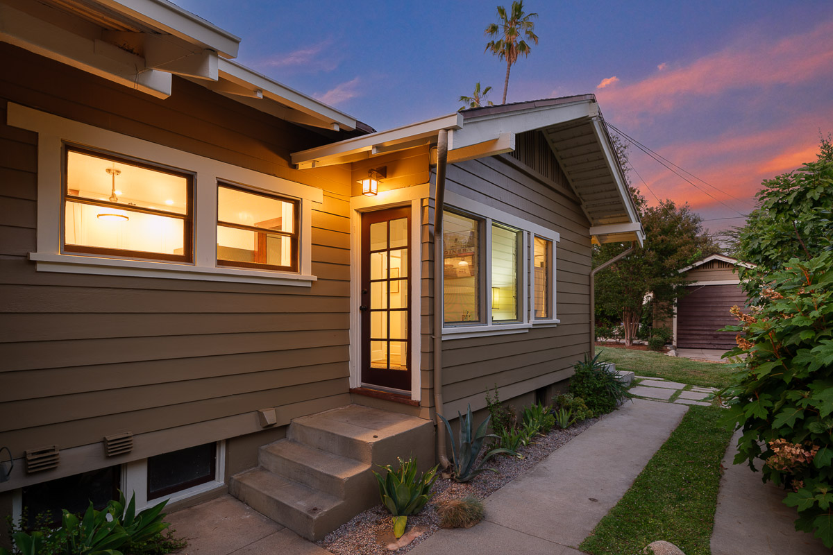 This exquisite three bedroom, two bath, 1,915 square foot (measured) 1914 Craftsman Bungalow, with a den or office, has been lovingly remodeled and restored throughout. The house is an idyllic reflection of the arts and crafts movement while still offering a welcoming floor plan for entertaining or for enjoying the best of the California lifestyle. The interior is filled with period grace and details including hardwood floors, wide baseboards, rich wood moldings, elegant woodwork, gorgeous fixtures, as well as custom built-ins, all reflecting the majesty of the era.